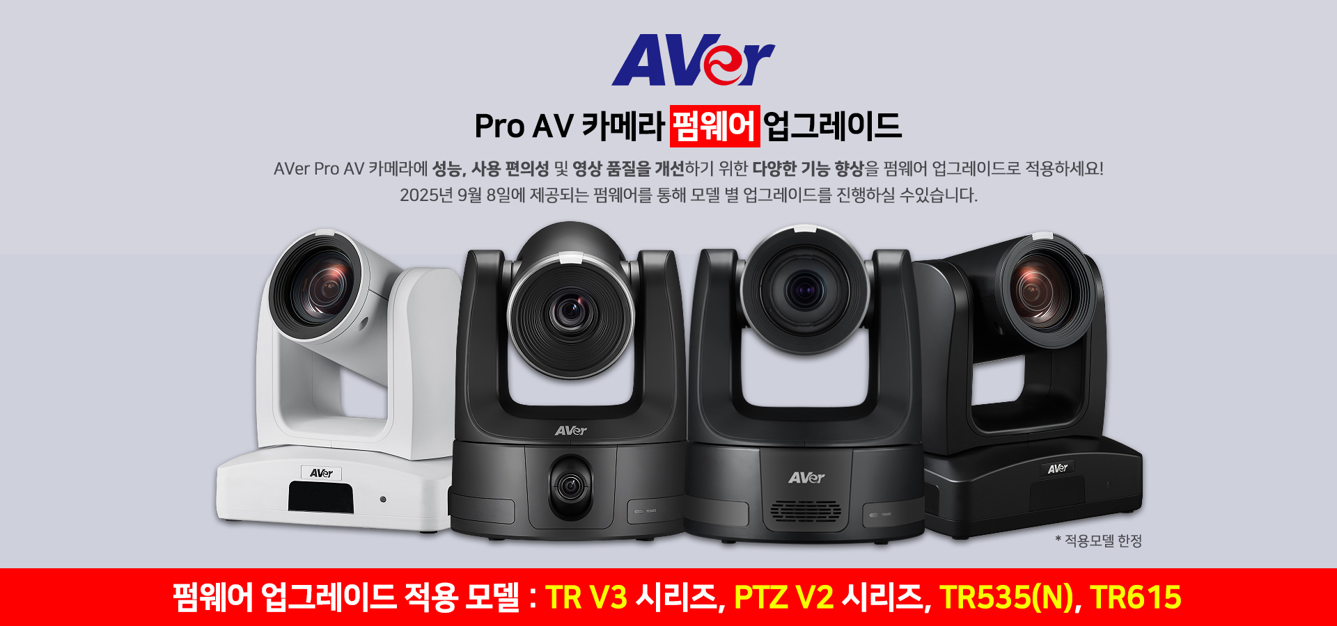 고해상도 FULL HD 화상 회의 시스템 및 프로페셔널 PTZ 카메라 및 자동 추적 PTZ 카메라(Auto Tracking PTZ Camera)컨퍼런스 카메라로 강의, 강연, 행사등 다양한 분야에 AVer Information만의 더 특별한 제품 포트폴리오를 통해 사용자는 보다 쉽고 간편하게, 컨텐츠 제작자는 고품질의 영상과 이미지를 통해 커뮤니케이션 및 교육 방식을 더 개선하고 비지니스의 성공을 제안합니다.