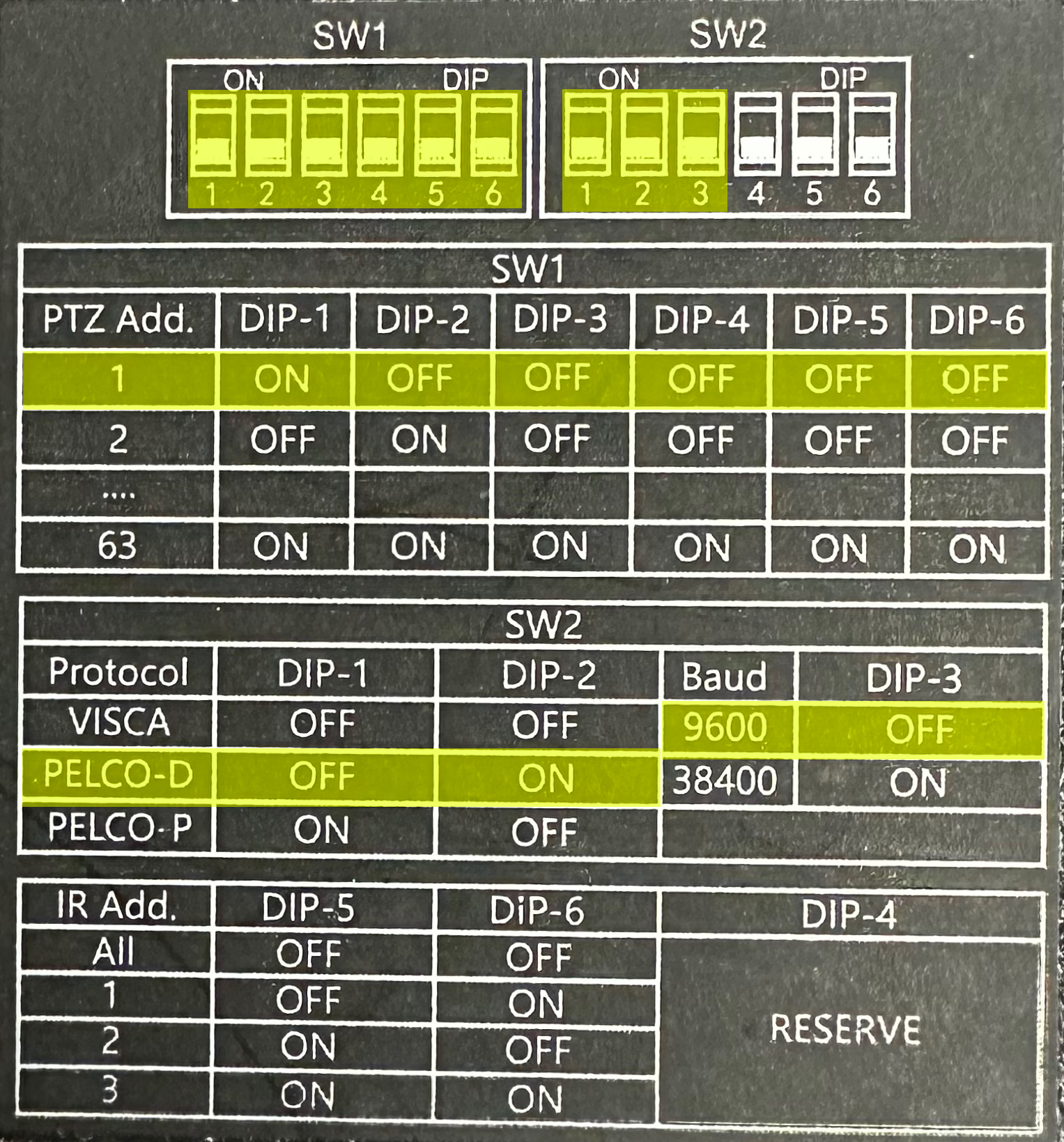 * PTZ Camera ADD : 1 * Protocol : Pelco-D * Baud : 9600 |