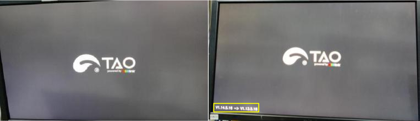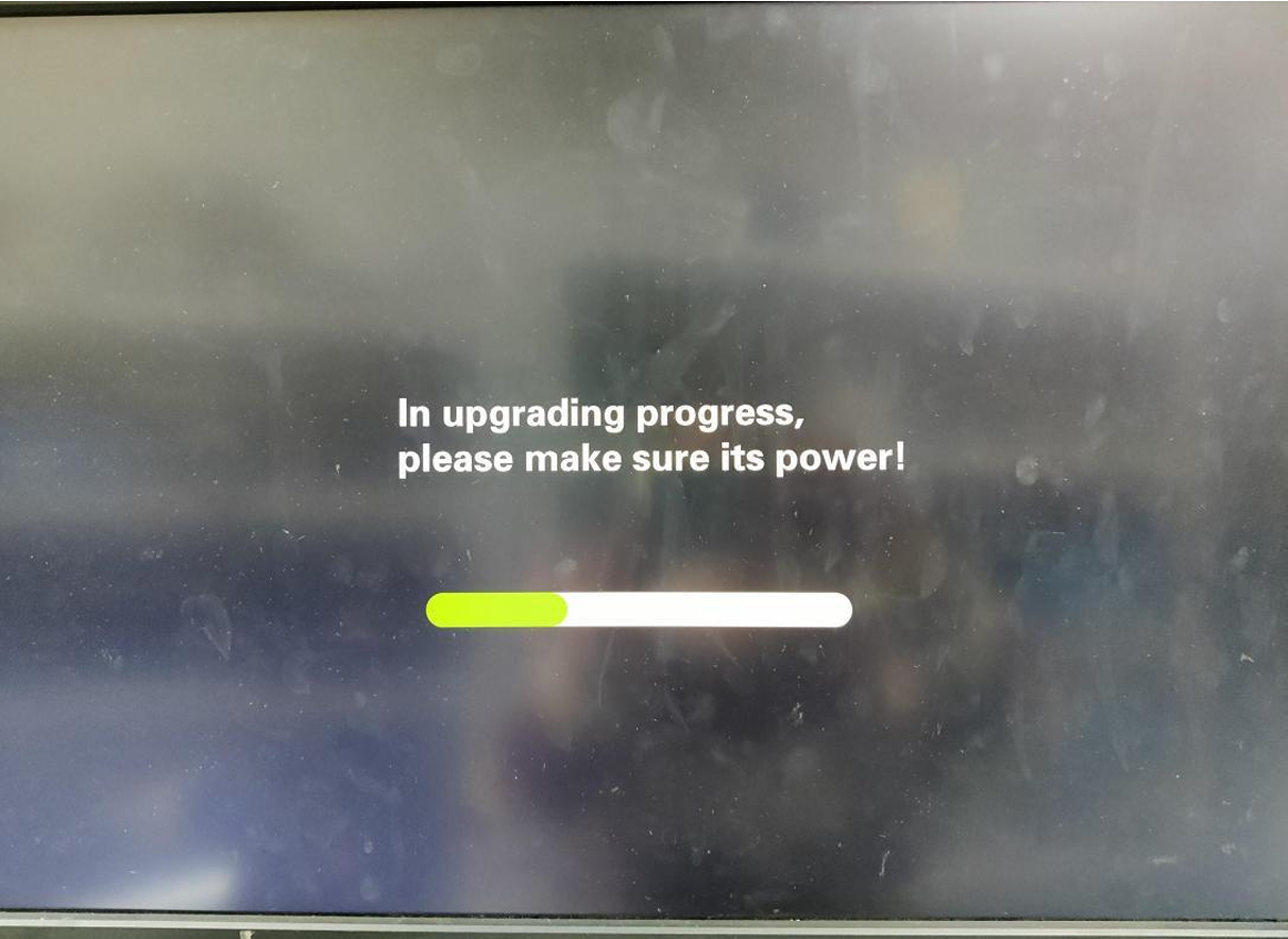 Step 3. 시스템을 업그레이드하는 데 약 1분 30초가 걸립니다. 이 과정에서 전원 케이블을 움직이지 않도록 하여 업그레이드를 방해하고 업그레이드가 실패하는 것을 방지합니다. 업그레이드 과정 동안 화면이 검은색이 되고 업그레이드가 성공하면 장치가 자동으로 다시 시작되어 부팅 로고와 펌웨어 버전 변경 사항이 표시됩니다.