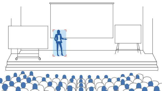 발표자를 화면 중심으로 고정하여 자동추적하는 모드로 편하게 이동, 발표하며무대, 청중석을 자유롭게 이동하는 모습을 활용할 수 있는 모드입니다.