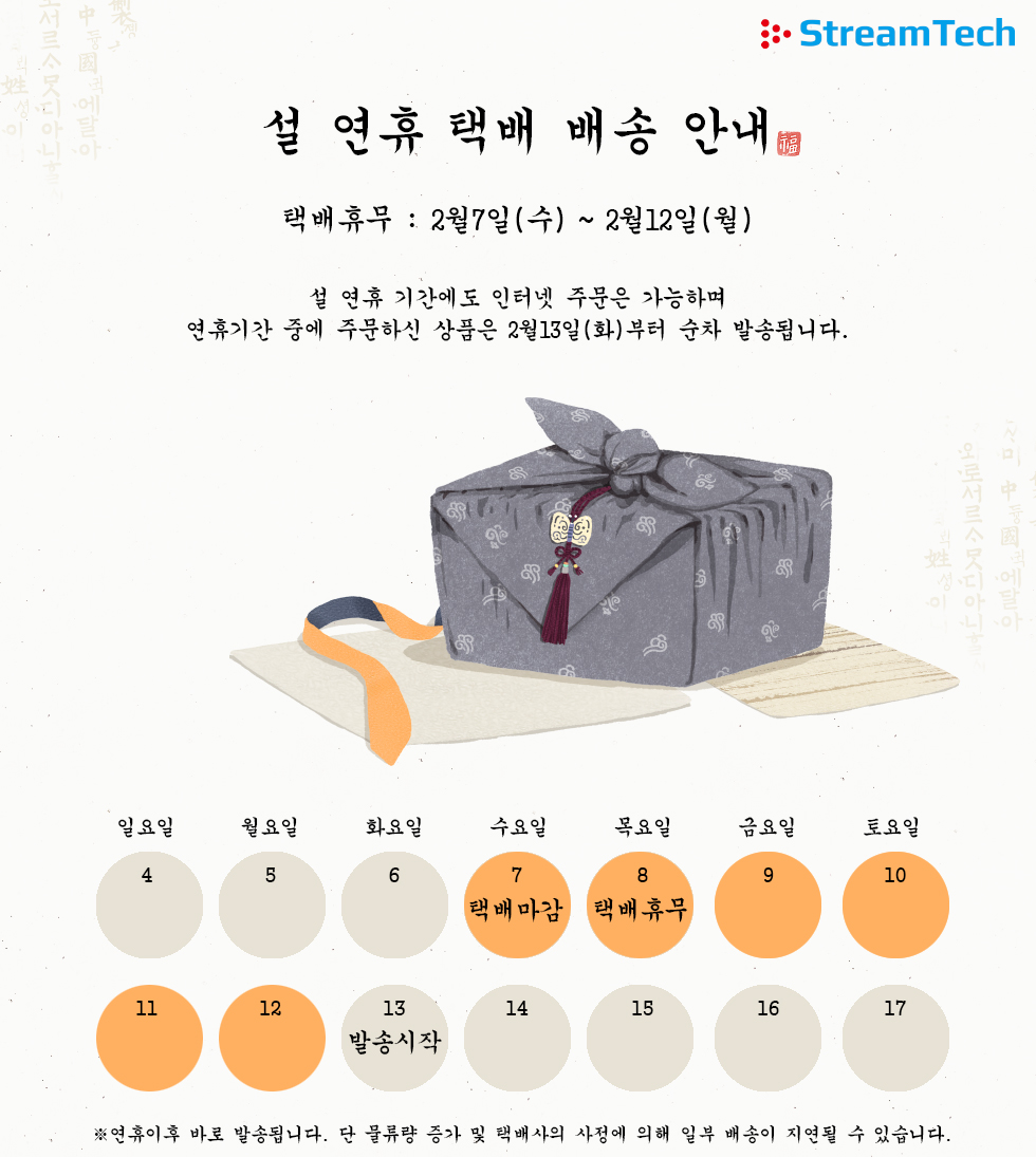 구정 연휴 배송 일정을 아래와 같이 알려 드립니다.